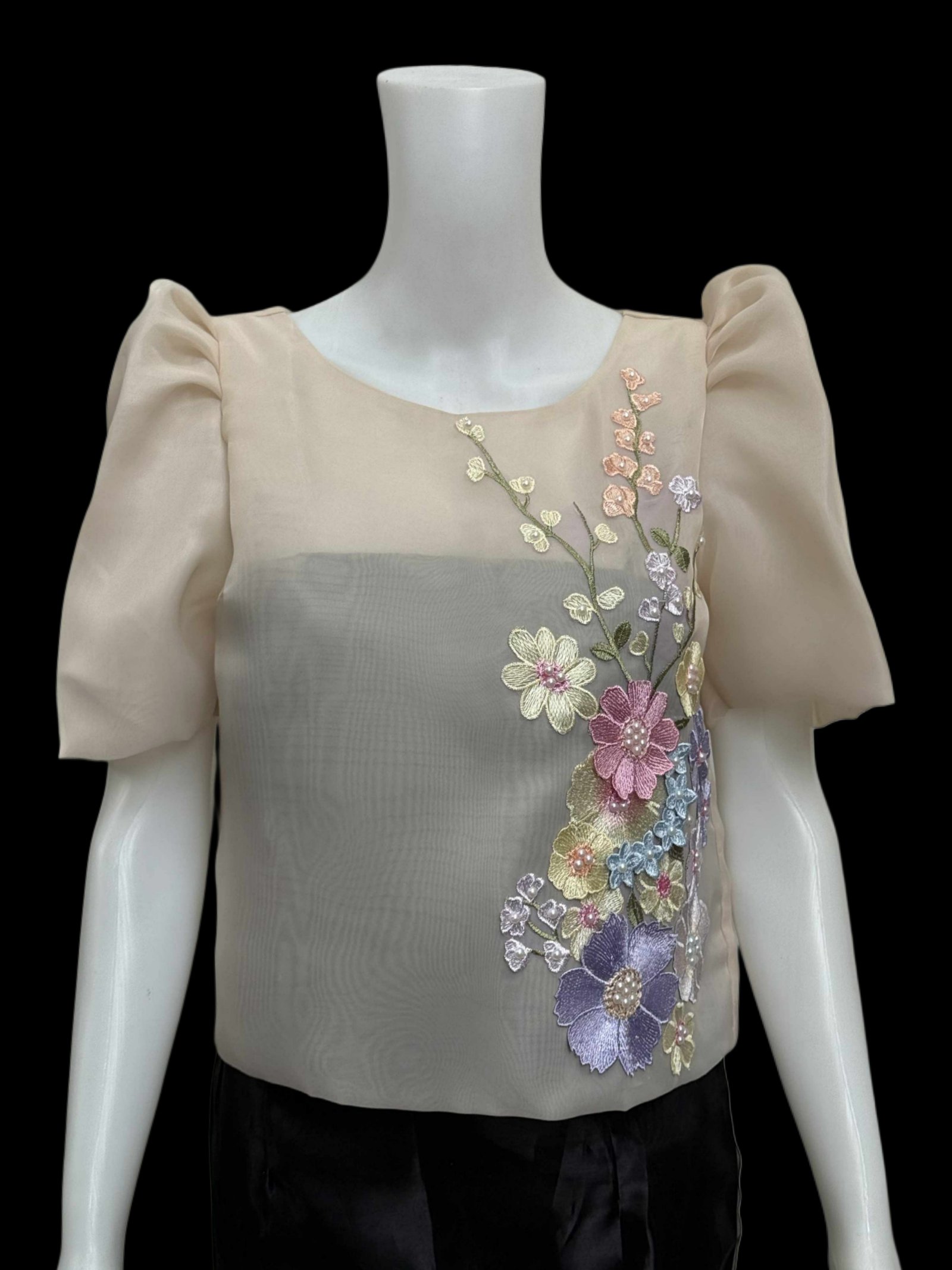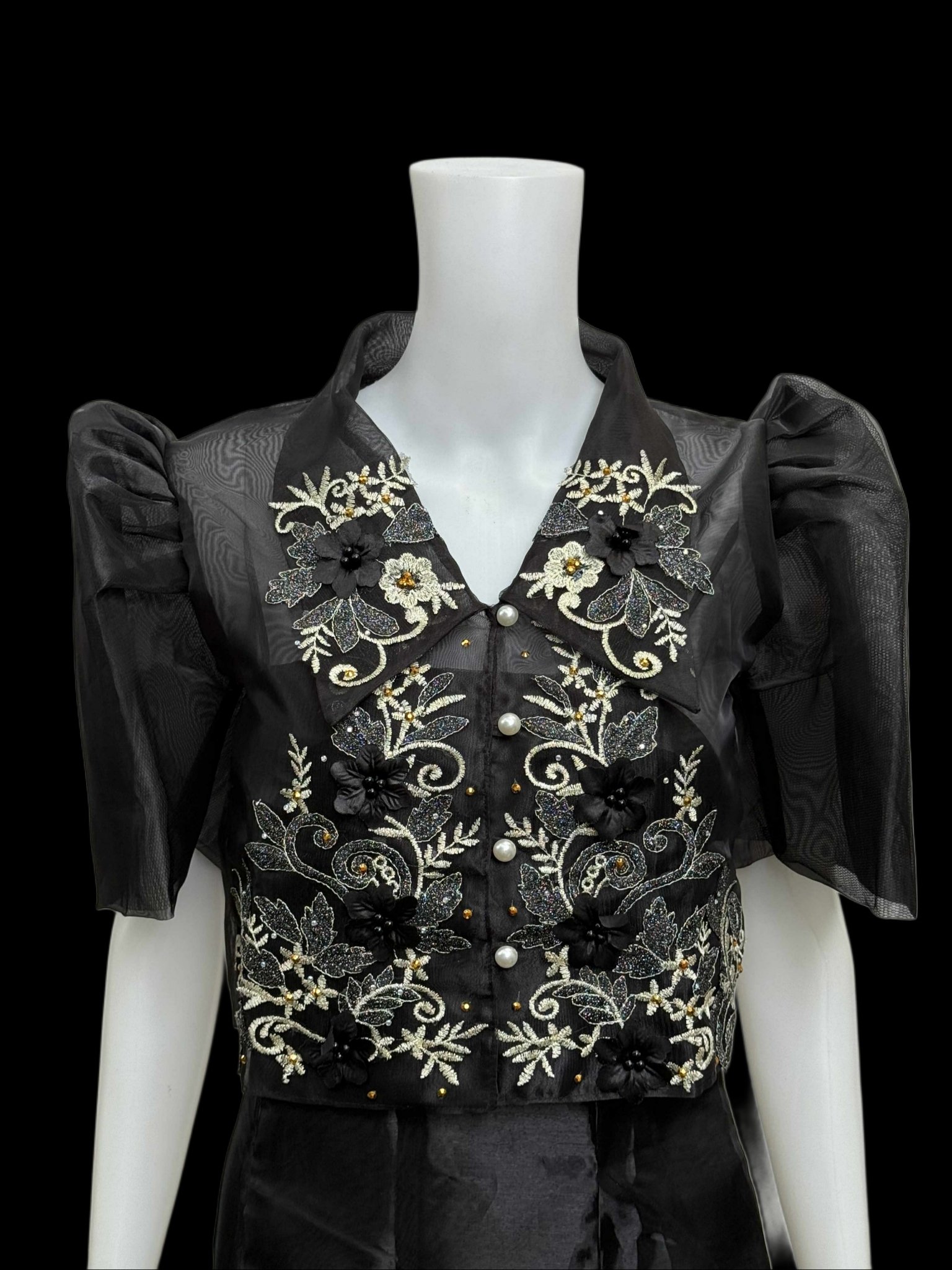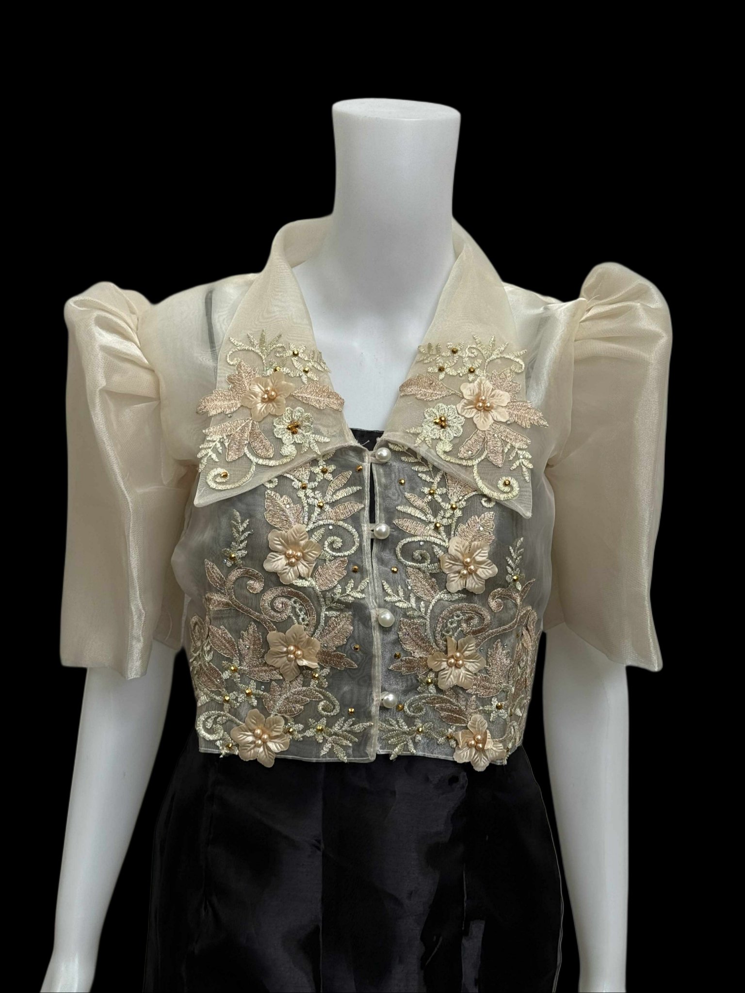Cowl Jusi Kimona Filipinana Top Rust, Beige, Black