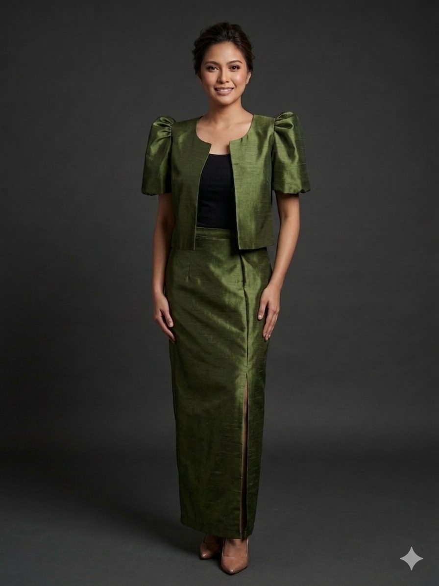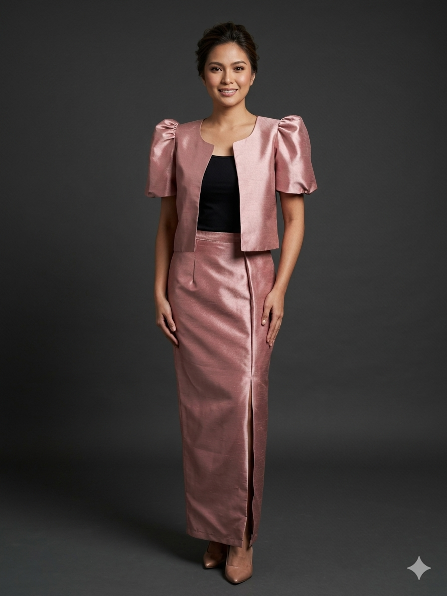 Filipiniana Top and Skirt Terno Set Old Rose, Oliv