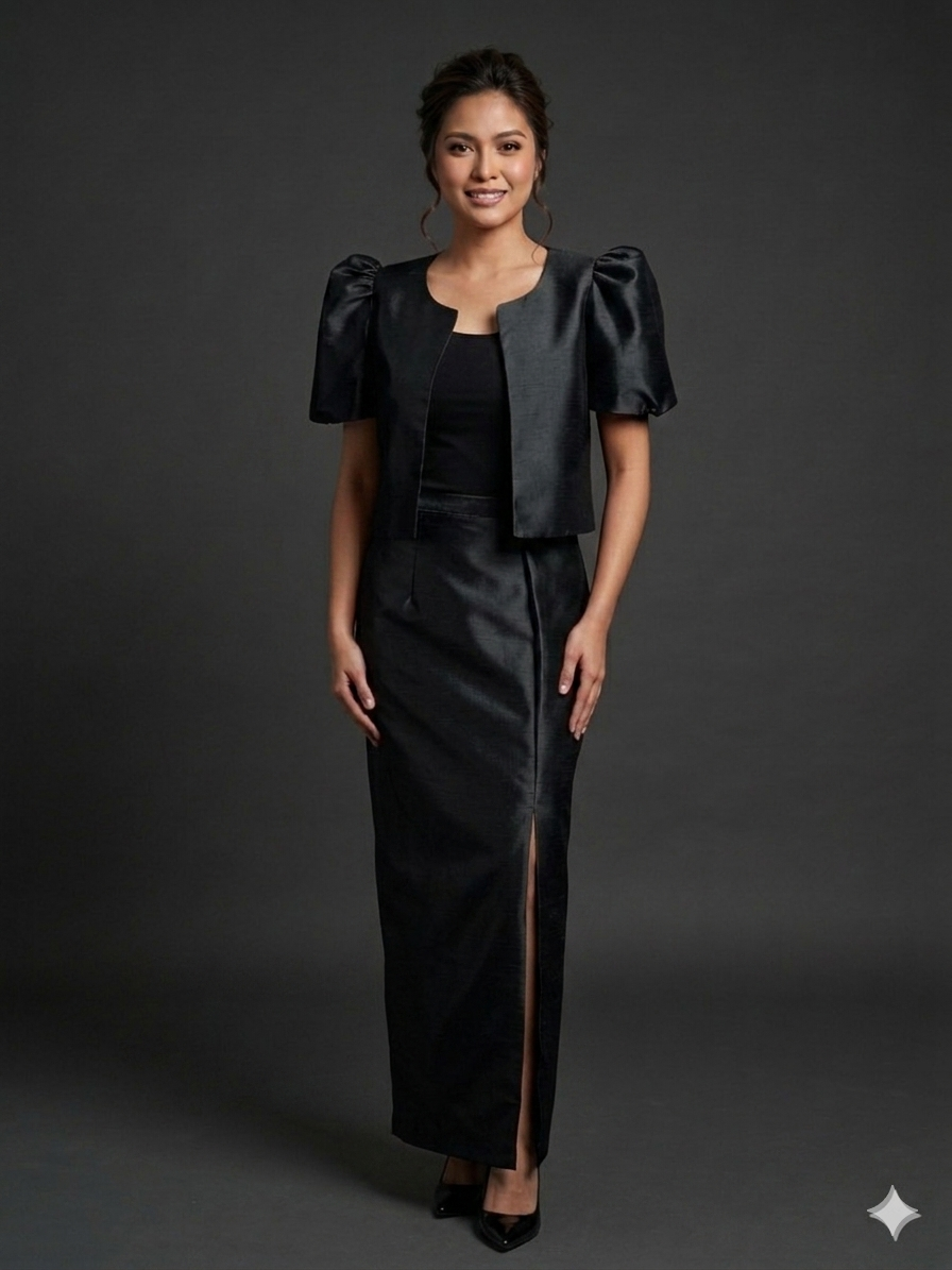 Filipiniana Top and Skirt Terno Set Black