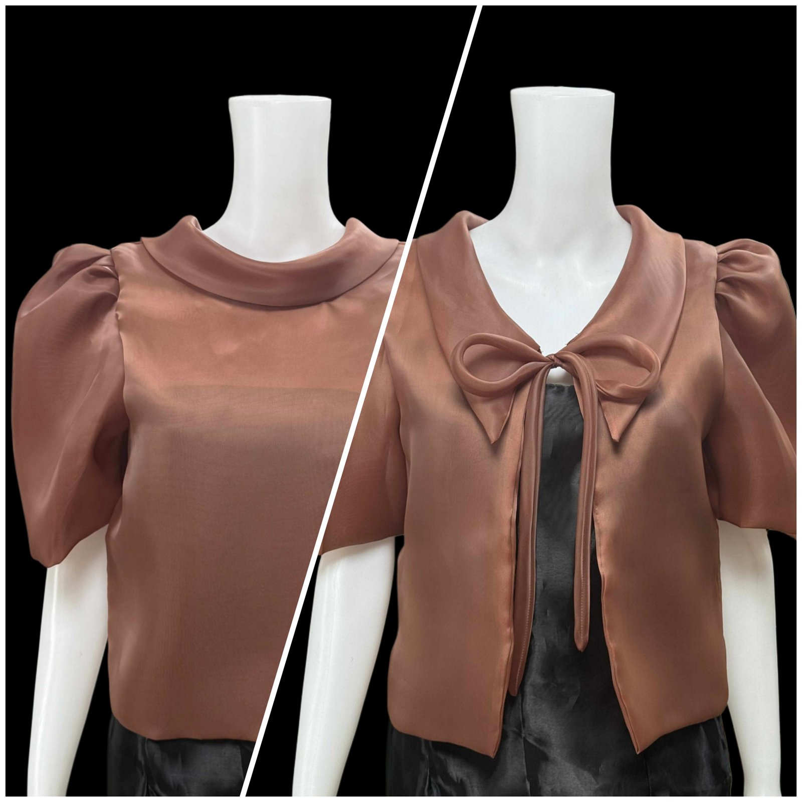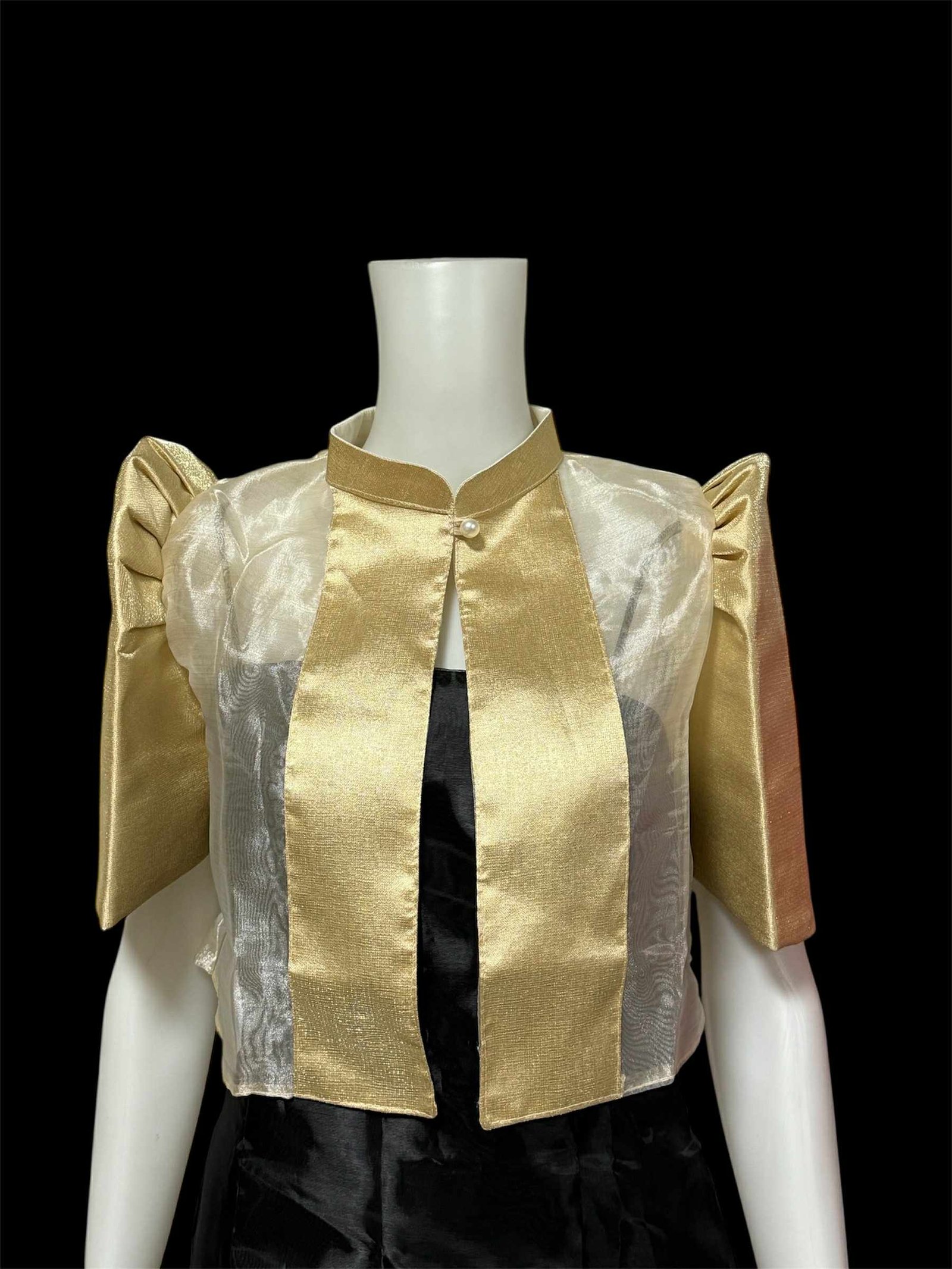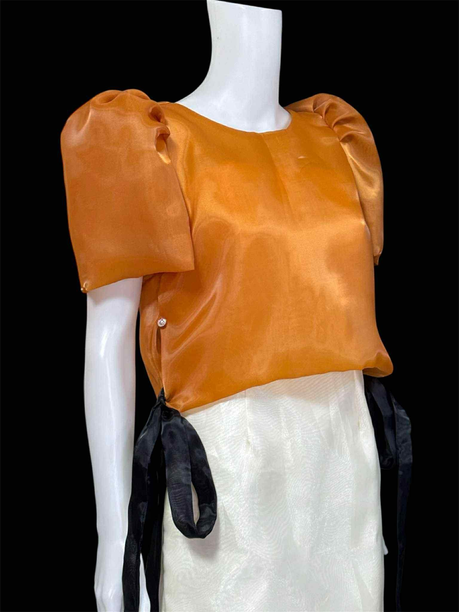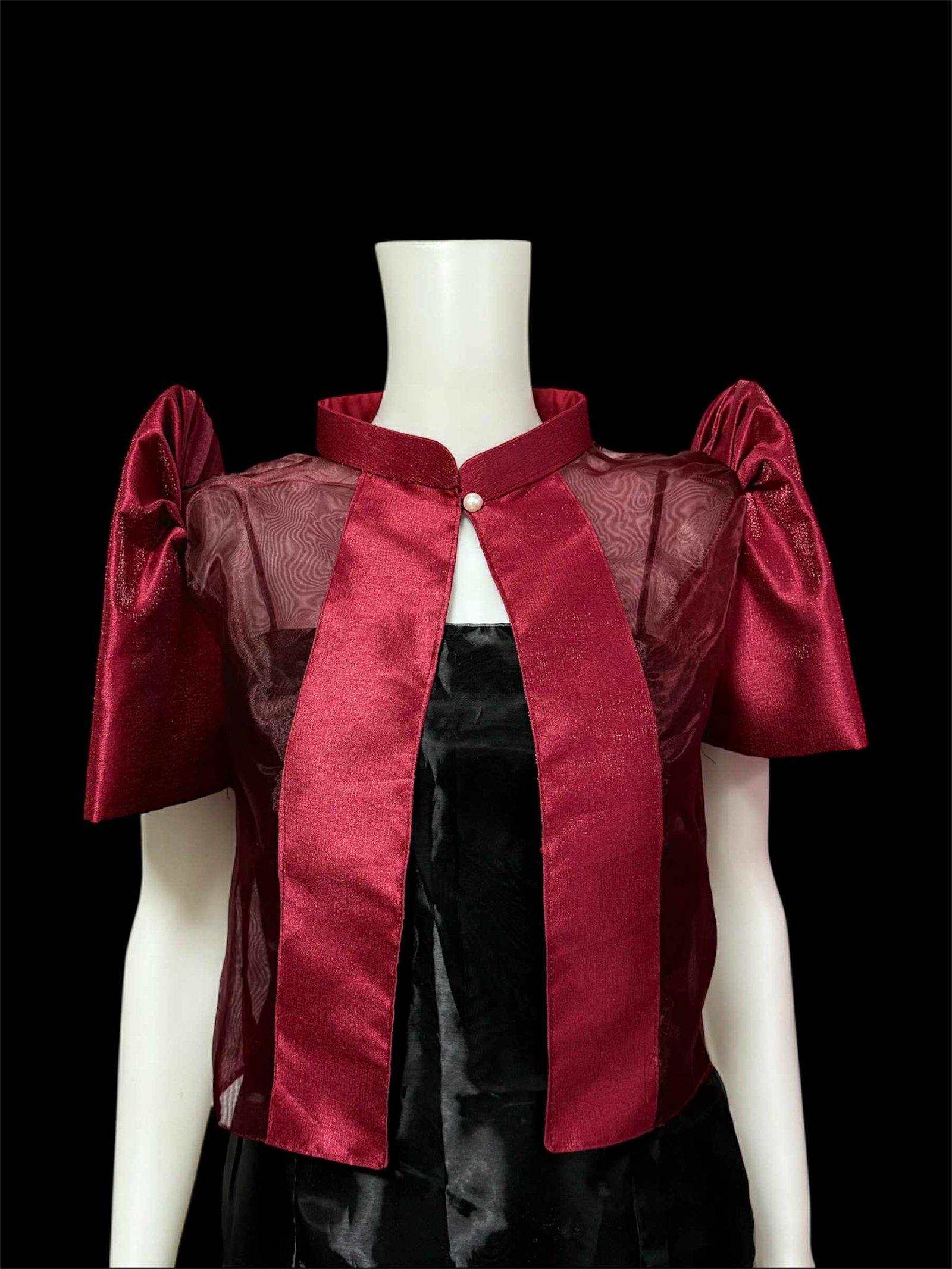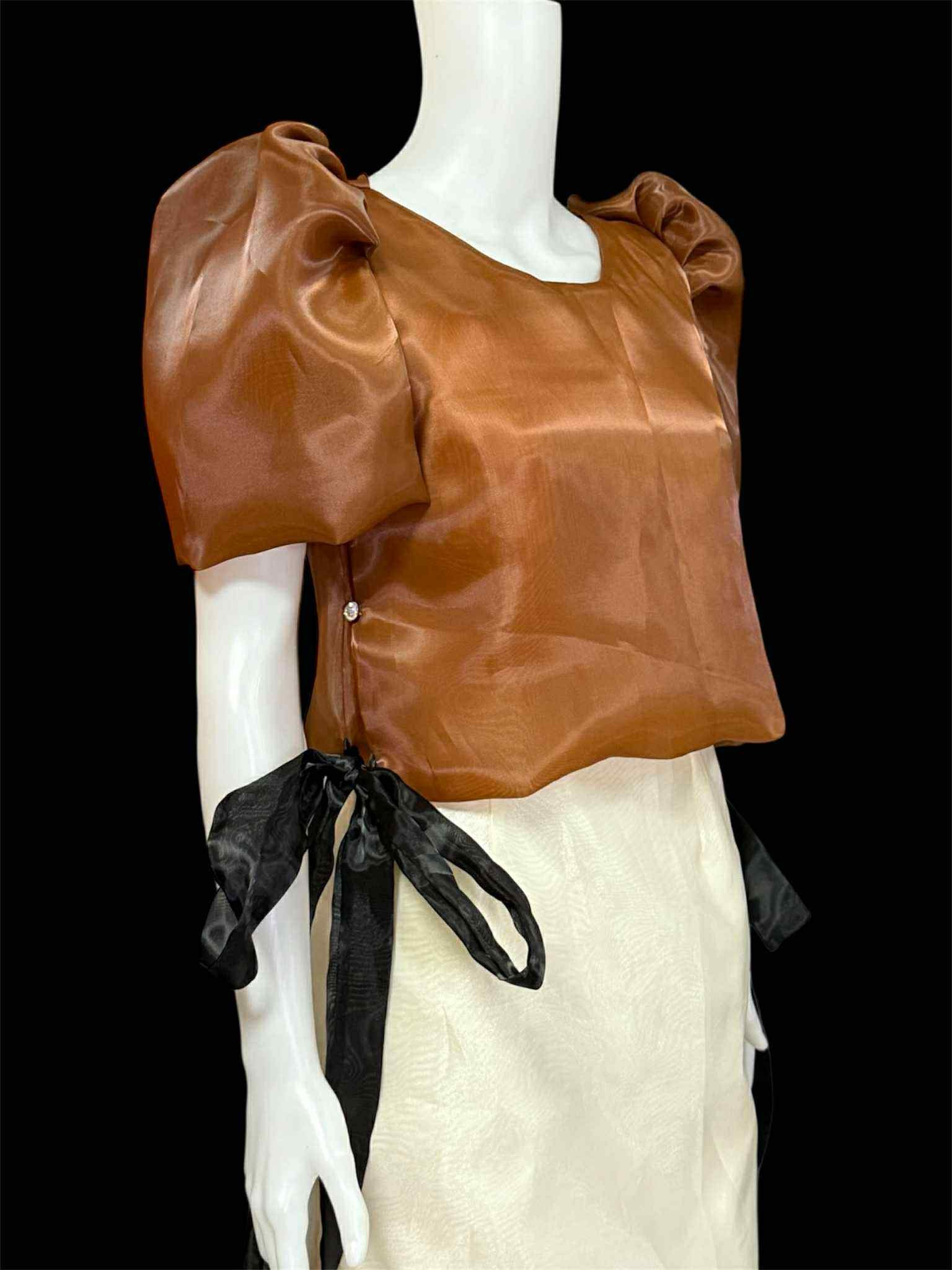 Cowl Jusi Kimona Filipinana Top Rust, Beige, Black