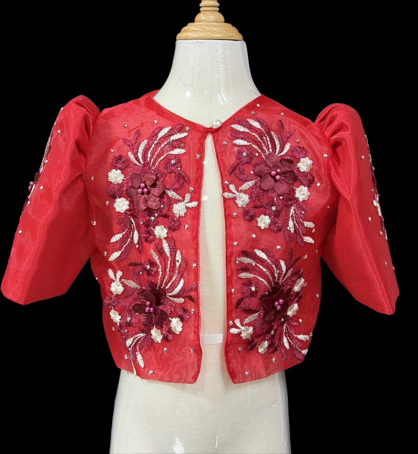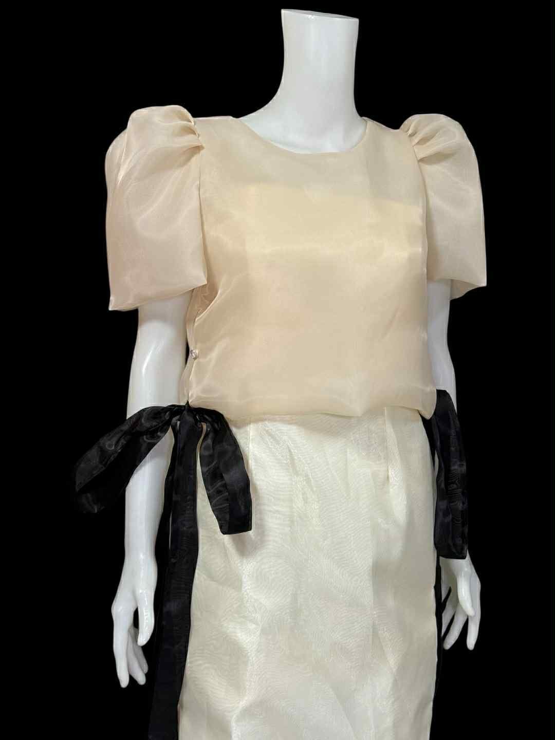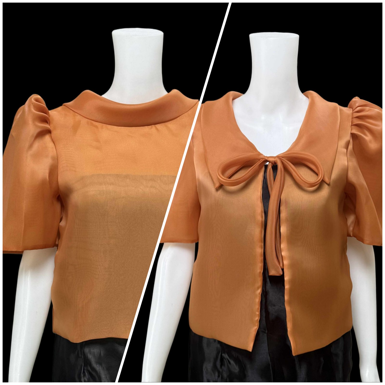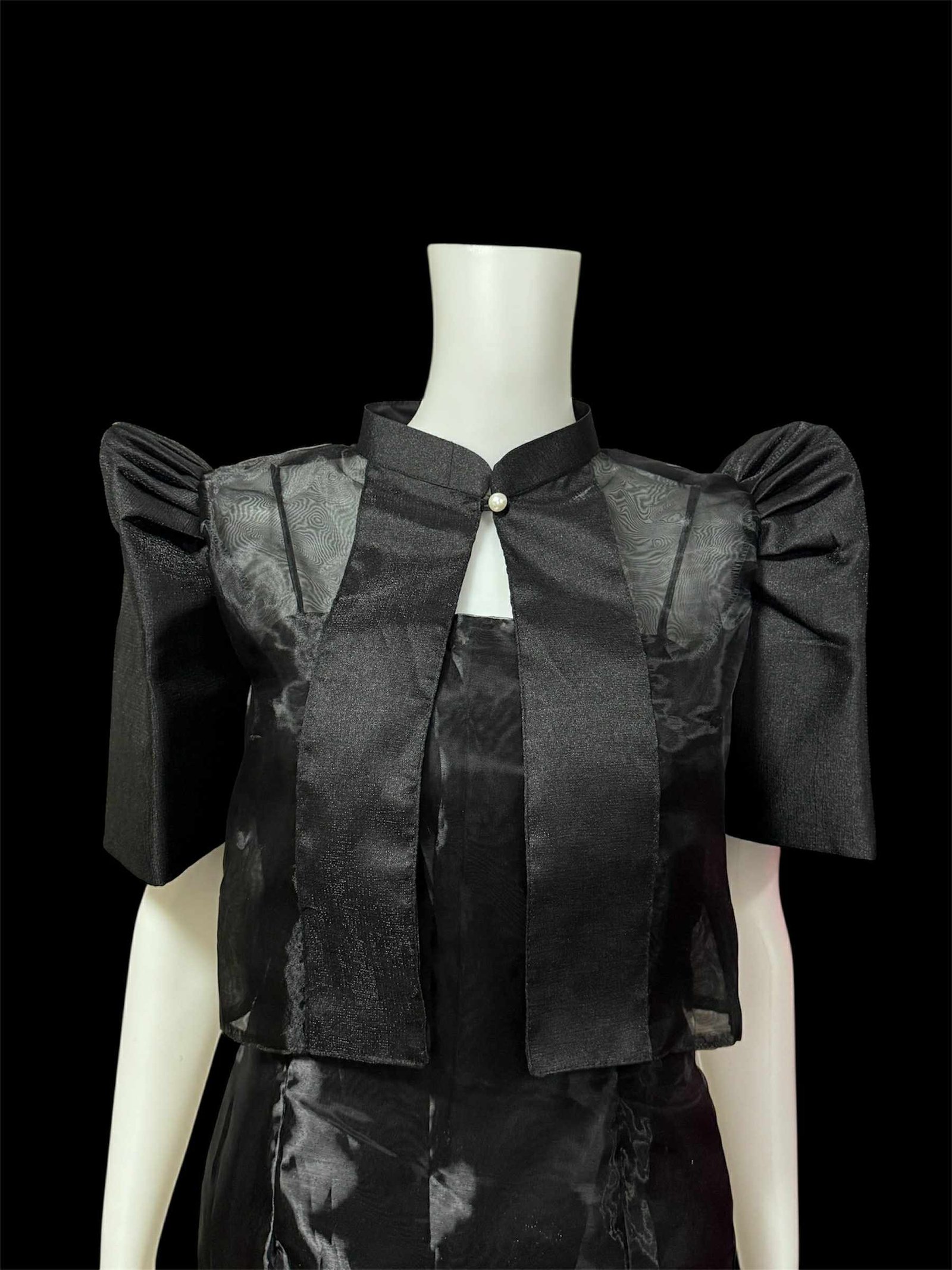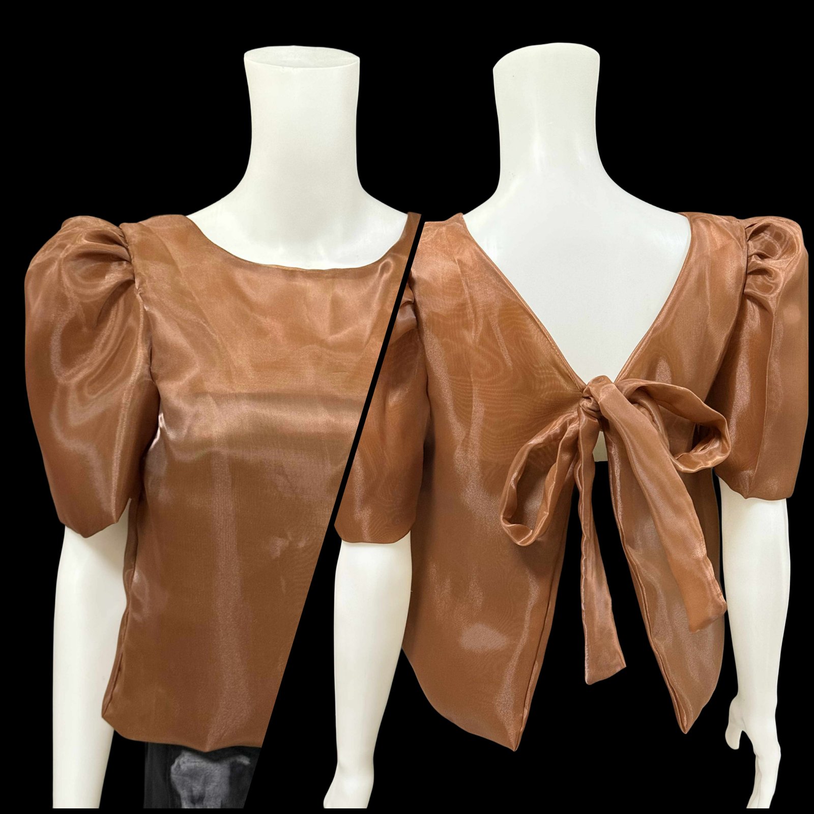 Cowl Jusi Kimona Filipinana Top Rust, Beige, Black