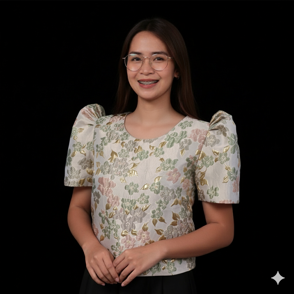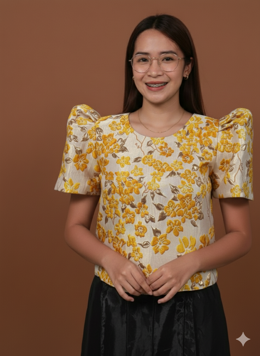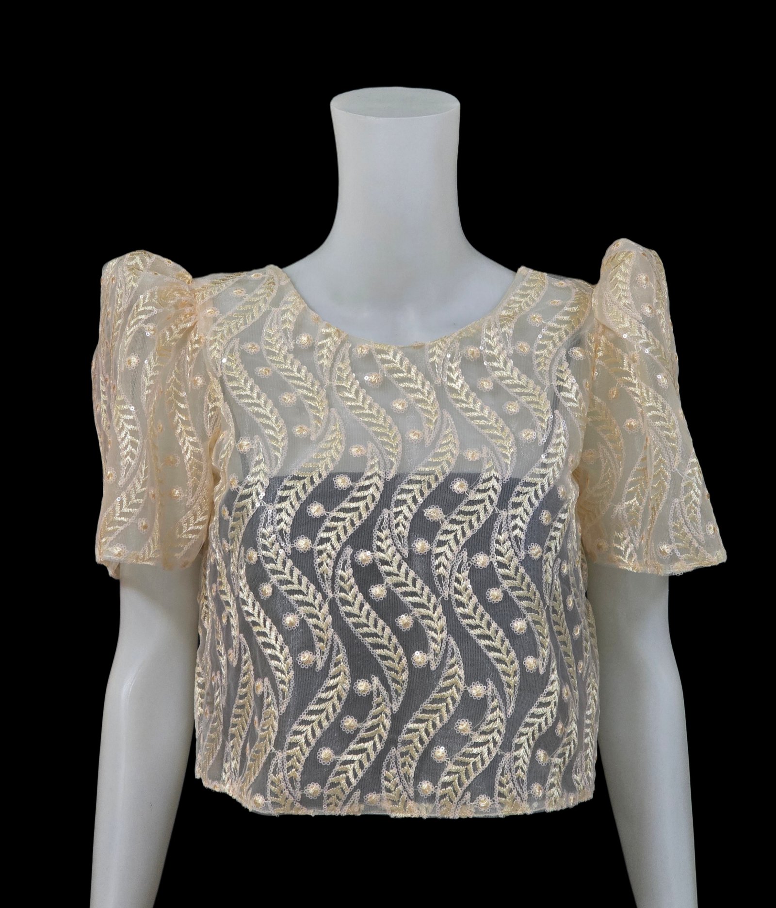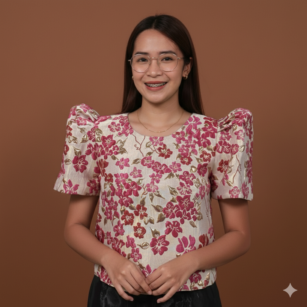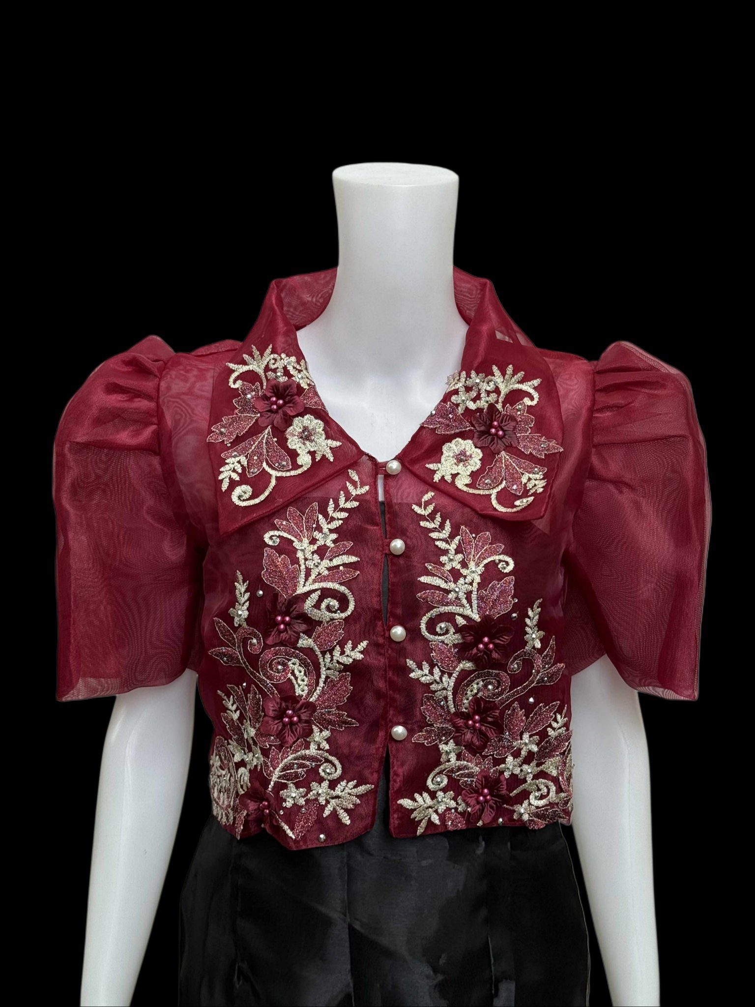 Cowl Jusi Kimona Filipinana Top Rust, Beige, Black