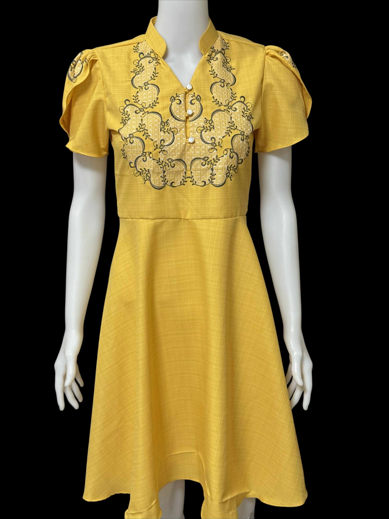 Julia Balloon Dress Mustard, Denim, Purple, Waterm
