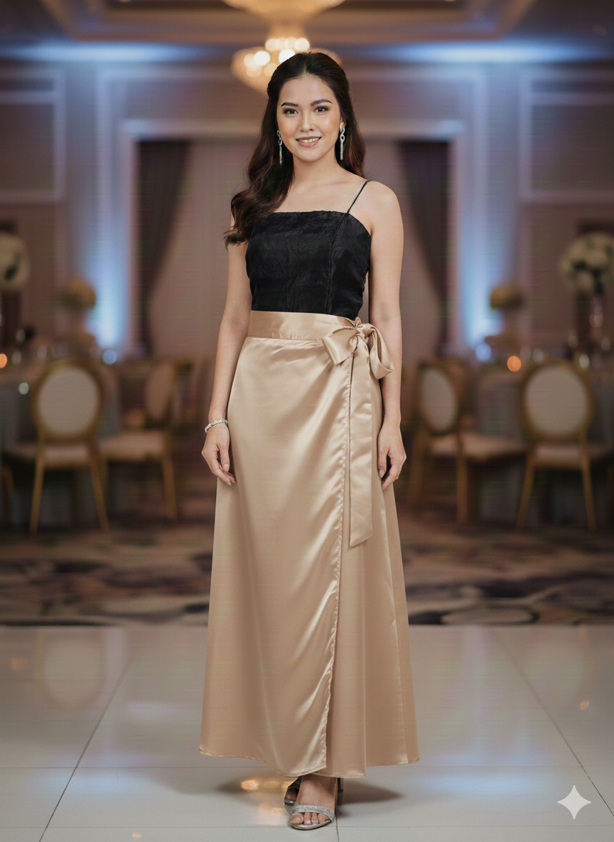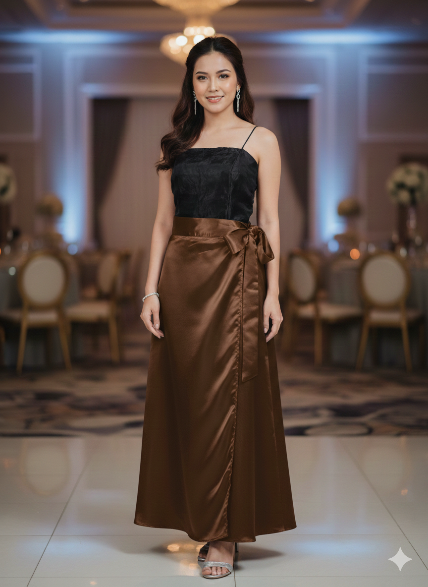 Formal Plain Skirt Satin Wrap around Beige,Brown,B