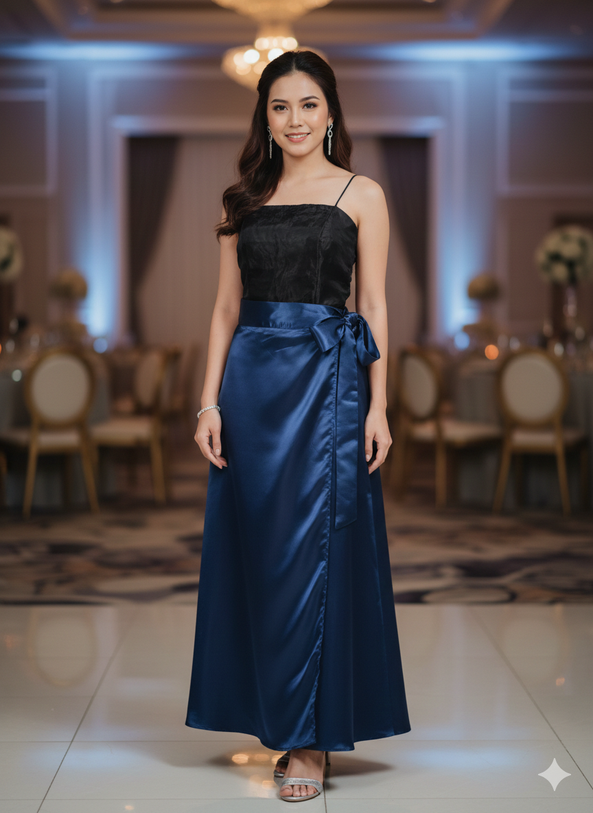 Formal Plain Skirt Wrap Around Navy Blue