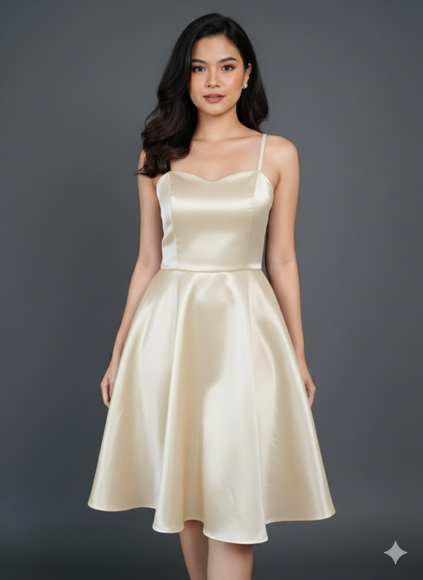 Champagne Grace A-line Dress Satin Fabric with Flo