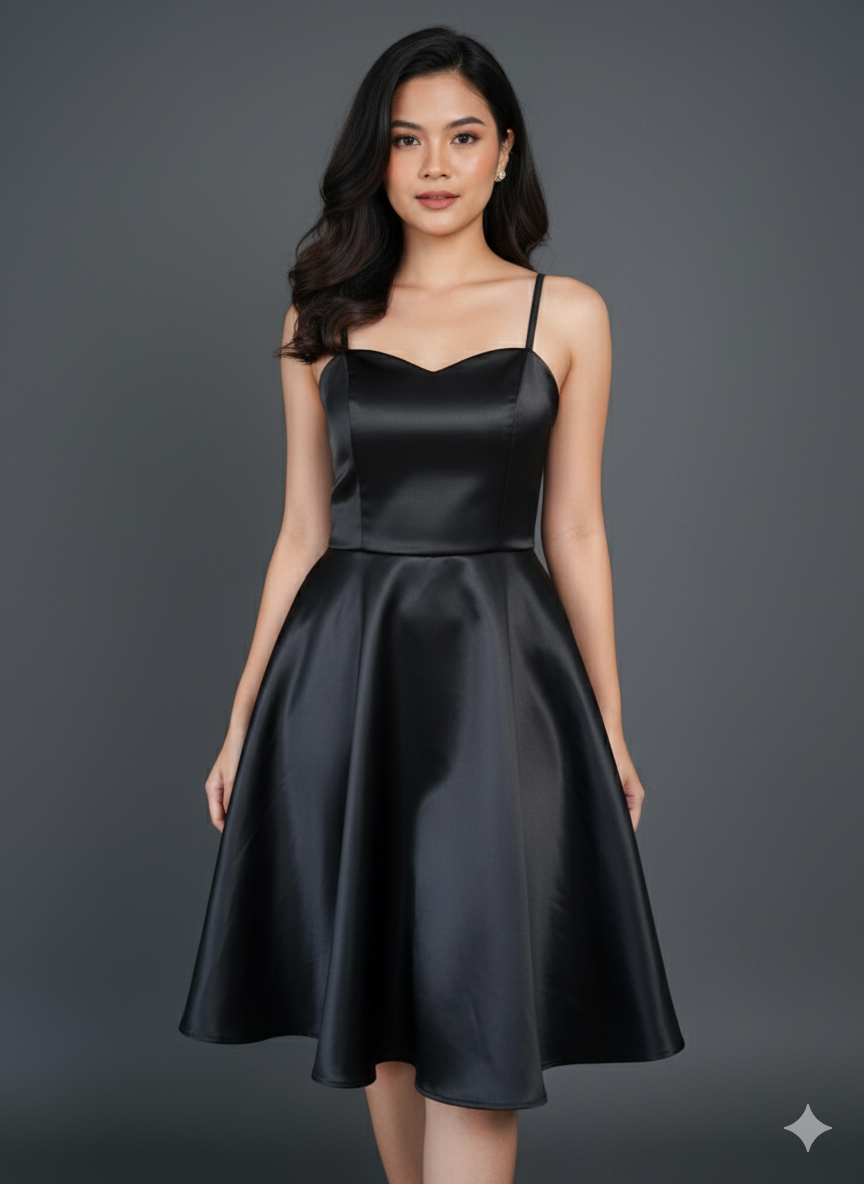 Inner Dress Satin Midi Length Black, Beige