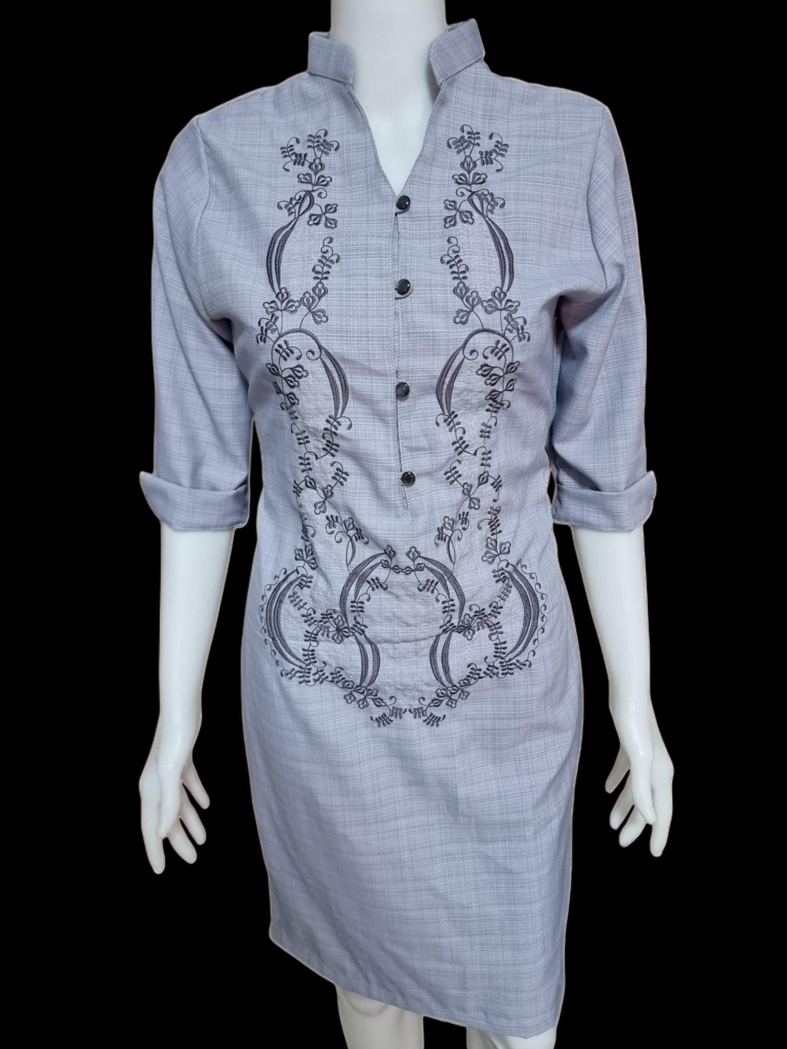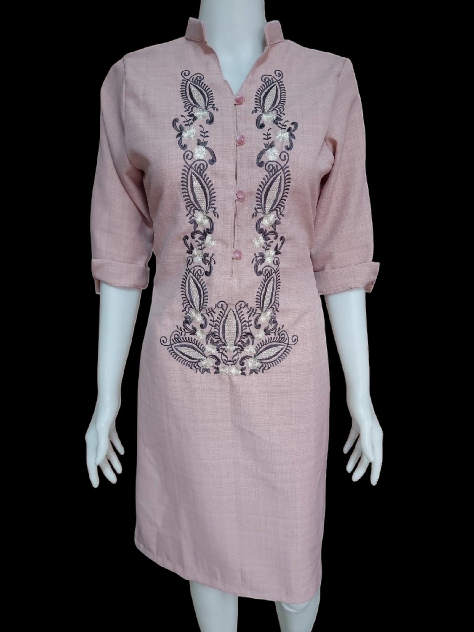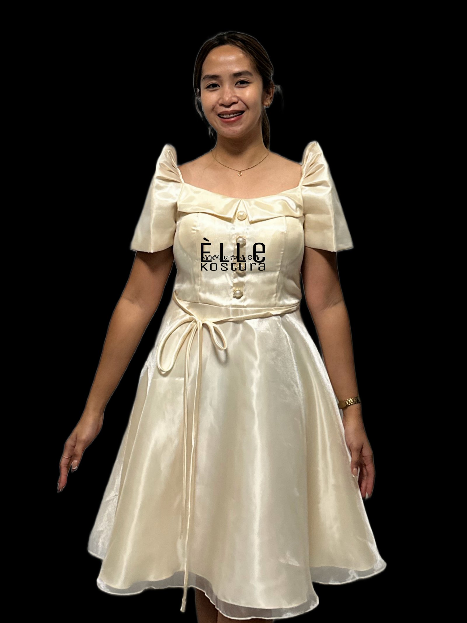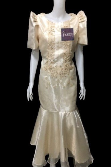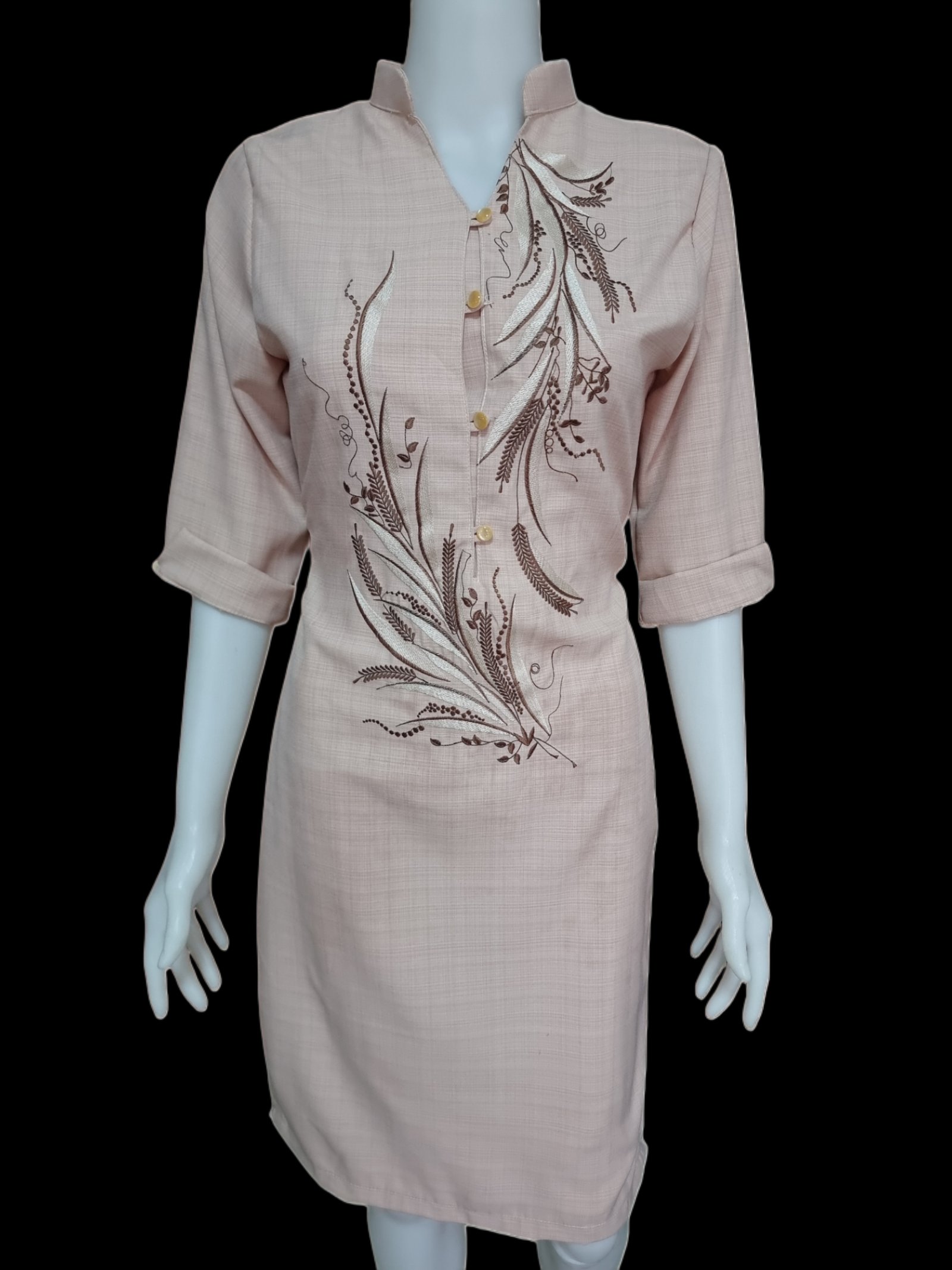 Barong Dress Chinese Collar, Puff Beige, Puff Blac